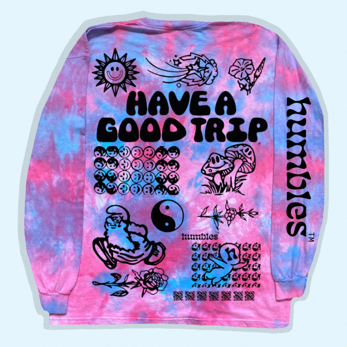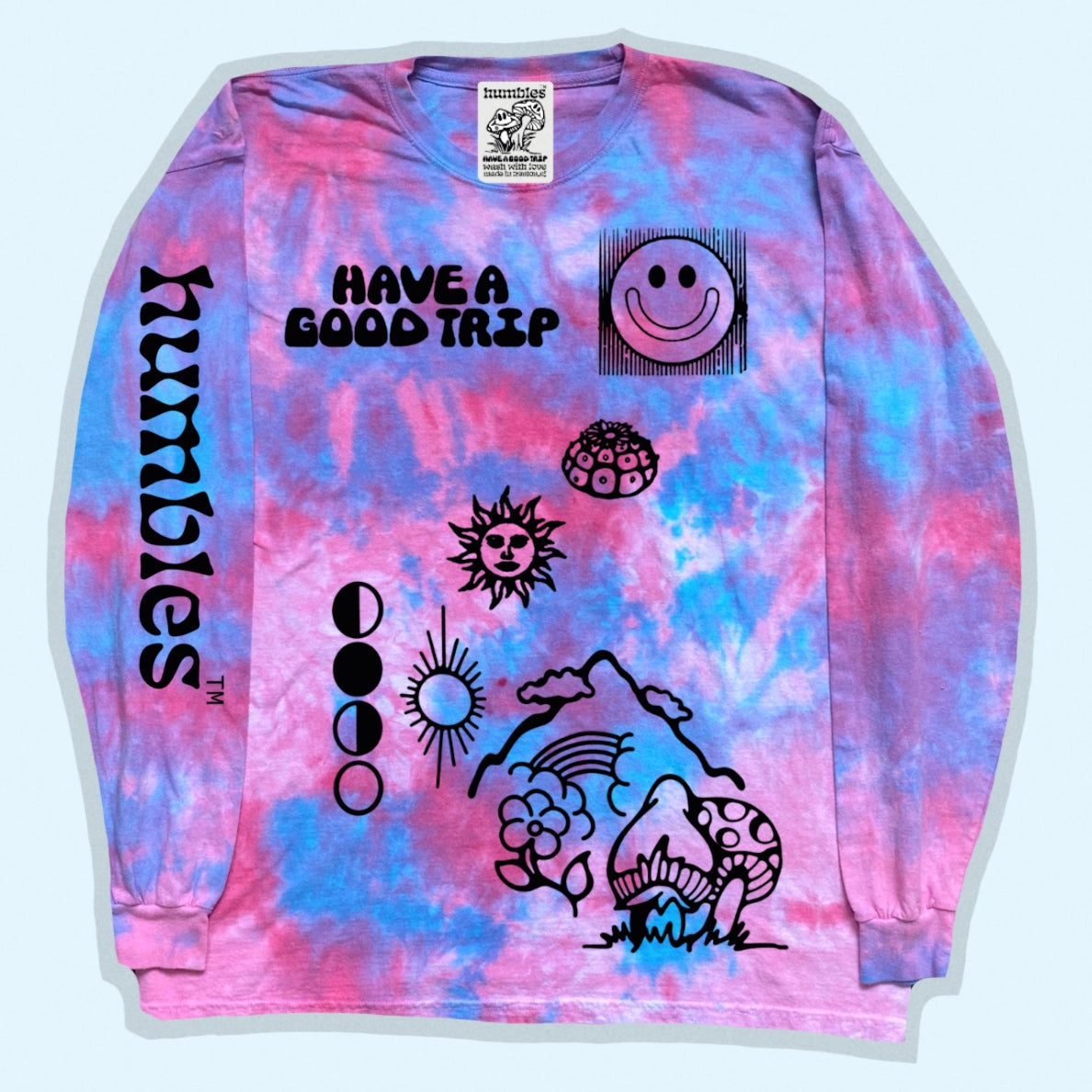 Black ink on sunset crush dye. Made with love. Hand screened, dyed, and designed in collaboration w/ @humbles_tm. Have a good trip :)